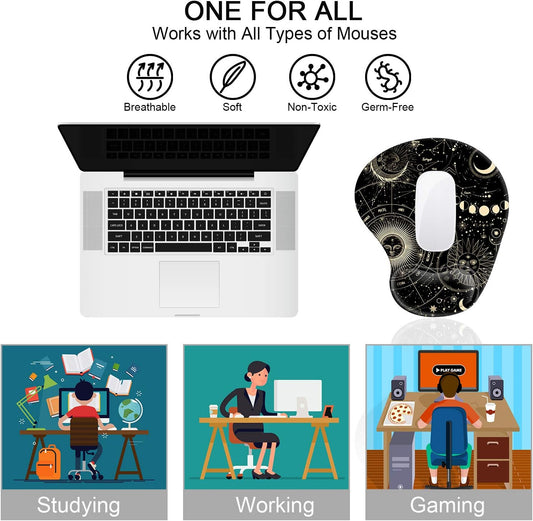 Ergonomic Mouse Pad with Gel Wrist Rest Support, Cute Mouse Pads with Non-Slip Rubber Base Wrist Rest Pad for Home, Office & Travel Easy Typing & Pain Relief, Moon Vintage